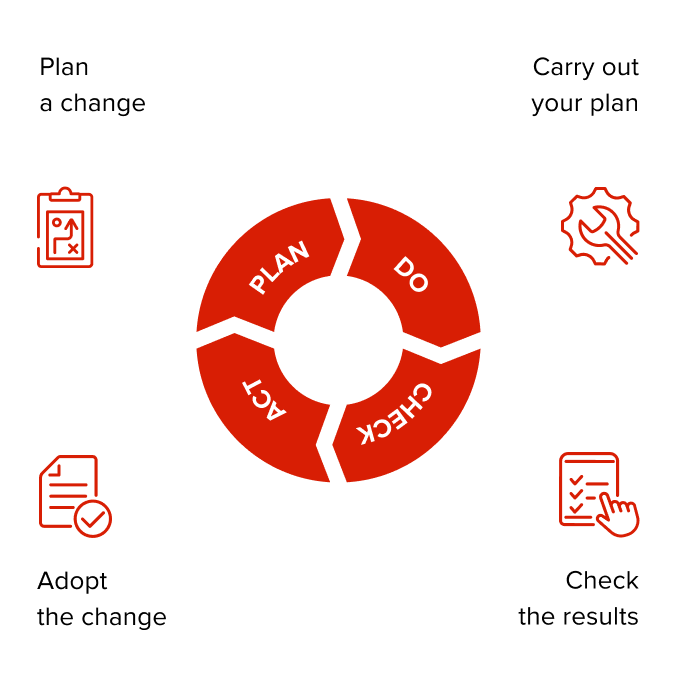 As part of maintenance and improvement of the Process Safety Management System, the following steps are required in accordance with the Deming cycle: